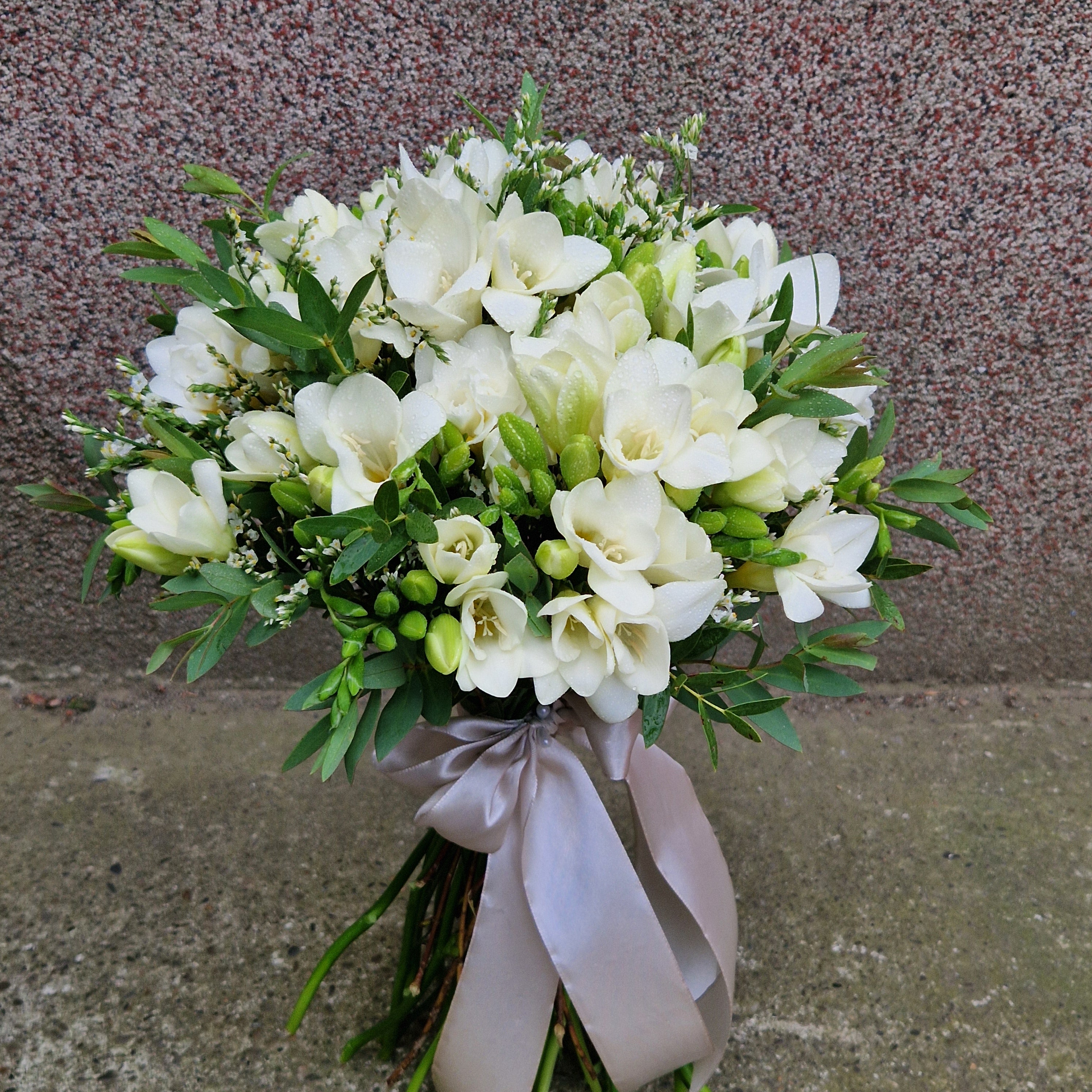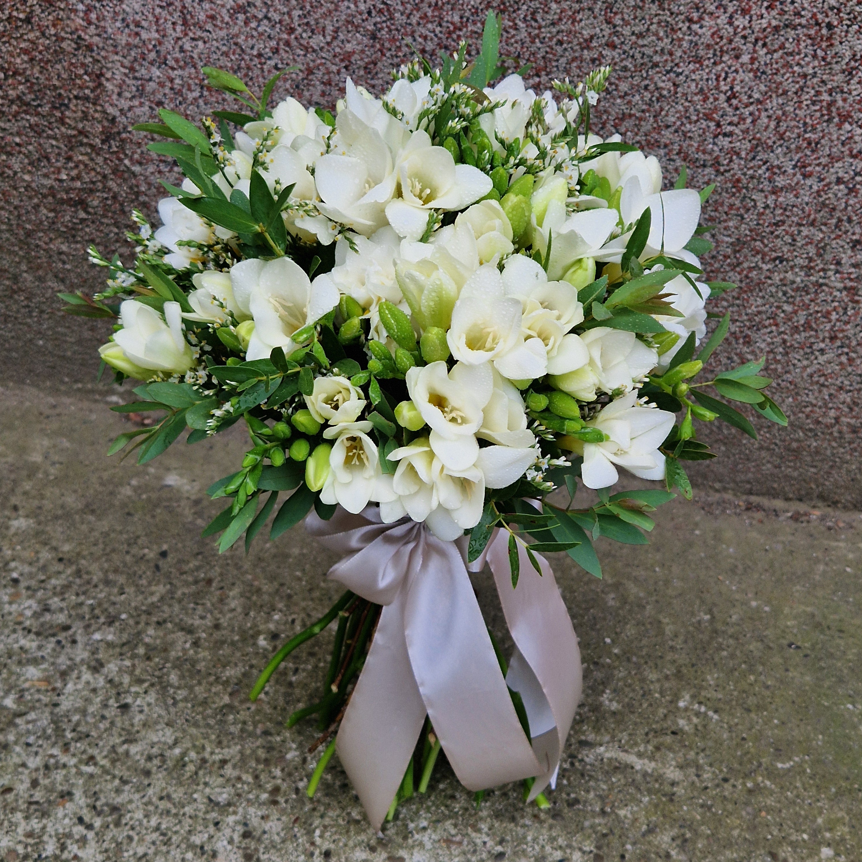 Acest buchet contine 27 fire de frezii parfumate si verdeata decorativa. Poate fi oferit cuiva special din viata ta, fiind cel mai bun mesager al gandurilor tale.